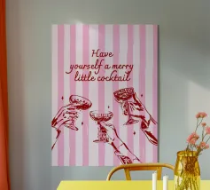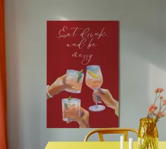 Ein lustiges und nostalgisches Design mit dem Titel "Let's Have a Drink", das den verspielten Satz in fetter Retro-Schrift mit dem lebhaften Bild von Menschen, die feierlich auf Gläser anstoßen, kombiniert. Die Vintage-inspirierte Typografie und die fröhliche Szene fangen den Geist guter Zeiten und sozialer Verbindungen ein. Mit seinen warmen, einladenden Farben und dem Gefühl von Aufregung ist dieses Kunstwerk perfekt für alle, die sich gerne entspannen und die Gesellschaft anderer genießen. Ideal für Hausbars, Küchen oder Gesellschaftsräume, verleiht dieser Druck jedem Raum einen Hauch von Retro-Flair und feierlicher Energie. Eine großartige Ergänzung für Wandkunst, Poster & mehr.