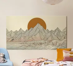 Embrace the profound beauty of serene solitude. This minimalist landscape captures the quiet moment the sun kisses the horizon, casting a warm glow over a tranquil sea. Using simple shapes and a soothing, earthy palette of terracotta and muted blues, this piece is an open invitation to pause, breathe, and find a moment of stillness in a busy world. It’s the perfect artwork to create a calm, meditative focal point in your living room, bedroom, or any space where you seek peace and a gentle escape.