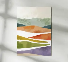 Tuscan Fields is a serene watercolor landscape inspired by the gentle rhythm of rolling hills and golden light. Soft washes of green and ochre capture the calm of open fields under a blue summer sky. This artwork brings a sense of space, harmony, and quiet joy — perfect for interiors that celebrate nature and simplicity.