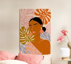 Dieses ausdrucksstarke Poster vereint stilisierte tropische Sinnlichkeit mit grafischer Raffinesse. In kraftvollen Boho-Beigetönen und klaren Kontrasten erinnert es an die Ästhetik des Art Déco und ikonischer Modeillustrationen. Die selbstbewusste Pose und florale Details verleihen dem Motiv Glamour und Stärke – ein feminines Statement, das zugleich exotisch und elegant wirkt. Ideal für moderne Räume und Interessenten mit Stilbewusstsein und Fernweh: Einmal Südsee und bloß nicht zurück.