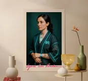 Ein visionäres Porträt von Ada Lovelace – der ersten Programmiererin der Geschichte, neu interpretiert im futuristischen Cyberpunk-Stil. Tattoos, Tech-Gadgets und der binäre Code „0/1“ verbinden historische Genialität mit moderner Ästhetik. Für alle Fans von Female Empowerment, IT-Kultur und Digital Art. Perfekt als Poster für Arbeitszimmer, Galerien oder moderne Lernräume.