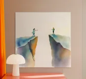Freunde, die sich über einen Abgrund hinweg die Hände reichen Poster mit Aluminium Rahmen