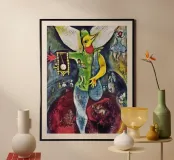 Der Gaukler, 1943 - von Marc Chagall Poster mit Holzrahmen