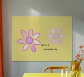 Zwei pinke Blumen auf gelbem Hintergrund mit Text Poster