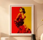 Flamenco First | Stilisierte Flamenco-Tänzerin in Gelb & Rot Poster