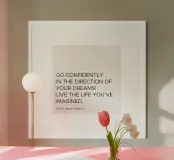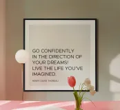 Gehen Sie selbstbewusst in Richtung Ihrer Träume Zitat Poster mit Holzrahmen