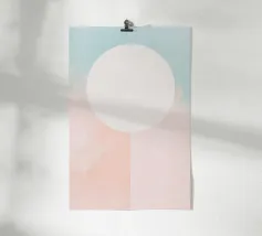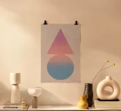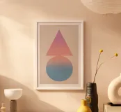 Dieses ruhige Design vereint klare geometrische Formen mit sanften Farbverläufen in Violett, Rosa und Hellblau. Das Dreieck und der Kreis schaffen eine harmonische Balance, die modern, stilvoll und meditativ wirkt. Perfekt für skandinavisch inspirierte Wohnräume, kreative Büros oder als ästhetischer Ruhepol in jeder Galerie.
