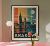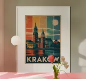Entdecken Sie die atemberaubende Schönheit von Krakau mit diesem einzigartigen Vintage-Reiseposter. Perfekt für Ihr Wohnzimmer oder als Geschenk für Reisefans.