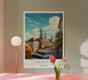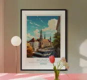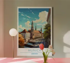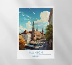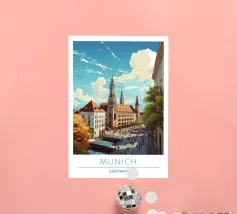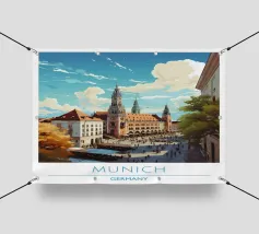 München Deutschland Rathausplatz Reiseplakat | Bayerische Stadt Poster