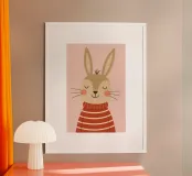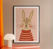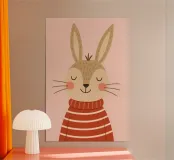 Bringen Sie Wärme und Charme in das Zimmer Ihres Kindes mit diesem bezaubernden, minimalistischen Hasenposter. Mit einem weichen pastellfarbenen Hintergrund und einem gemütlichen rot gestreiften Pullover verleiht diese moderne Tierillustration jedem Kinderzimmer einen verspielten und doch beruhigenden Touch. Perfekt für skandinavische oder neutrale Interieurs, kombiniert dieser Druck trendige Schlichtheit mit herzerwärmendem Charakterdesign - ein zeitloses Stück für Jung und Alt gleichermaßen.