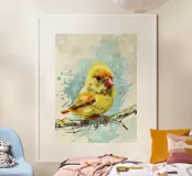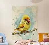 Leuchtend gelber Vogel auf einem Ast sitzend Poster mit Aluminium Rahmen