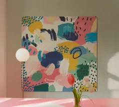 Erlebe die kreative Energie mit dem Holzrahmen Kunstdruck “Ruma” von Charlotte Winter! Dieses farbenfrohe Kunstwerk bringt frischen Schwung in jeden Raum. Perfekt für moderne, minimalistische oder verspielte Inneneinrichtungen, ergänzt es dein Wohnzimmer, Schlafzimmer oder Büro stilvoll. Die vielfältigen Farben und Formen fangen Blicke ein und setzen inspirierende Akzente. Ideal als Geschenk oder als Teil deiner eigenen Kunstsammlung! Die hochwertige Drucktechnik stellt sicher, dass die Farben lebendig und langlebig bleiben. Gönn dir oder deinen Liebsten etwas Besonderes – dieser Druck kann sowohl alleine als auch in einer Galerie-Wand wunderbar wirken!