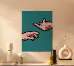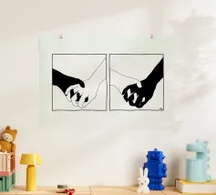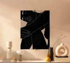 Dieses einzigartige Kunstwerk zeigt die eindringliche Kraft der Berührung und Gestik. Die schwarzen Hand-Silhouetten auf dem weißen Hintergrund erzeugen eine harmonische Balance zwischen Form und Leere, Nähe und Distanz. Diese minimalistische Komposition verleiht jedem Raum Tiefe und regt zur Reflexion über menschliche Verbindungen an. Ideal für moderne Interieurs, die subtile, aber aussagekräftige Akzente setzen möchten.