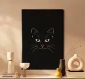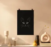 Schwarzer Hintergrund mit weißer Linie Zeichnung einer Katze Gesicht Poster