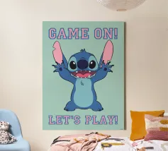 Bringen Sie Farbe und Spaß in Ihr Kinderzimmer mit diesem verspielten Wandbild von Stitch! Perfekt für die Spielzimmerdeko oder als Kinderzimmer Wandkunst. Eine inspirierende und lustige Grafik, die die Kreativität anregt.