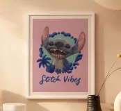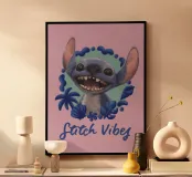 Entdecken Sie unser charmantes Wandbild 'Stitch VIBES - rosa' im Holzrahmen, perfekt für das Kinderzimmer. Dieser verspielte Druck kombiniert lebendige Farben und eine fröhliche Gestaltung, die jede Wand aufhellt.