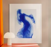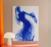 Bewegung in reinem Blau: Diese abstrakte Komposition fängt pure Dynamik in fließenden Formen ein. Wie Rauch oder Seide in Bewegung tanzen die transparenten Blaustränge vor weißem Grund und schaffen eine fast meditative Ruhe. Die verschiedenen Blauschattierungen erinnern an Yves Kleins legendäres Ultramarin und zeitgenössische Fluid-Art-Techniken. Das organische Spiel zwischen Dichte und Transparenz verleiht dem Bild räumliche Tiefe. Ein zeitloses Kunstwerk für Minimalismus-Liebhaber, das jeden Raum mit eleganter Leichtigkeit erfüllt.