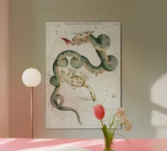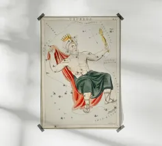 Dieser vintage Holzrahmen Kunstdruck zeigt das Tierkreiszeichen Taurus und verleiht Ihrem Raum einen einzigartigen Charme. Ideal für Sternzeichen-Liebhaber oder als stilvolle Wanddekoration in Wohn- oder Schlafzimmer.