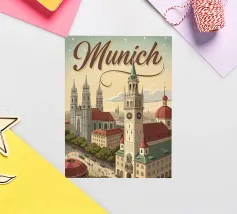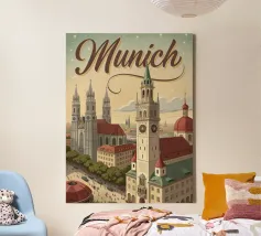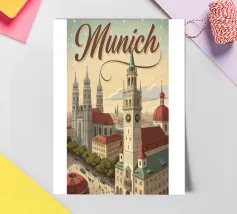 Erleben Sie die charmante Schönheit Münchens mit diesem Vintage Retro Poster. Perfekt für jedes Wohnzimmer oder Büro, bringt dieses Kunstwerk nostalgischen Flair und ist ein toller Gesprächsstarter. Ideal als Geschenk für Münchener oder als Erinnerung an Ihre Reisen.