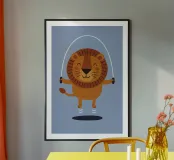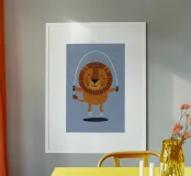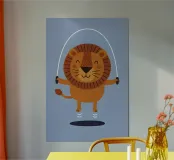Diese bezaubernde Löwen-Illustration zeigt einen fröhlichen Löwen, der freudig Seil springt - perfekt für Kinderzimmer, Kindergärten oder verspielte Räume. Mit hellen Farben und einem charmanten Ausdruck bringt dieses lustige Tierkunstwerk Wärme, Glück und Energie in jede Einrichtung. Ideal als Geschenk für Geburtstage, Baby-Duschen oder als Motivationshilfe für einen aktiven Lebensstil der Kinder.