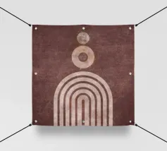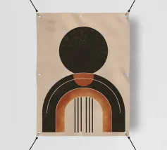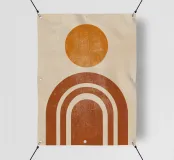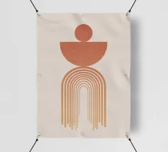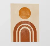 Bringen Sie Wärme und Ausgeglichenheit in Ihren Raum mit diesem abstrakten geometrischen Kunstwerk, das ein Sonnen- und Bogenmotiv in erdigen Terrakottatönen zeigt. Die minimalistische Retro-Ästhetik verleiht jedem Interieur einen zeitlosen, beruhigenden Touch. Perfekt für moderne, böhmische oder skandinavisch inspirierte Einrichtungen.