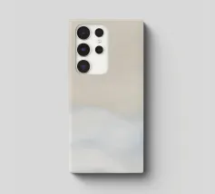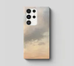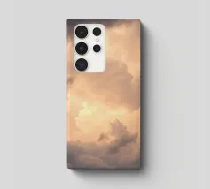 Ein ruhiger Hintergrund zeigt weiche, flauschige Wolken, die in warme Orange- und Beigetöne übergehen. Ideal für Benutzer, die ein ruhiges Hintergrundbild für ihr Handy suchen, das einen ästhetischen Touch hat.