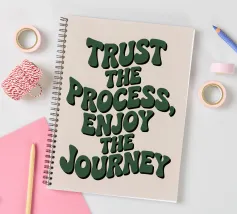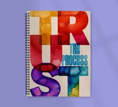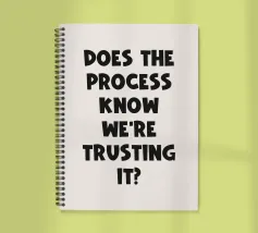 "Die Phrase IS ALL A PART OF THE PROCESS' ist in einem dynamischen, leicht chaotischen Layout mit roter Typografie in Notlage vor einem strukturierten gelben Hintergrund angeordnet, mit einer subtilen Silhouette hinter dem Text. Die raue Textur und die unvollkommenen Buchstabenformen vermitteln ein Gefühl von Authentizität und Widerstandsfähigkeit.",