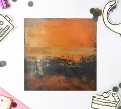 A vibrant and abstract painting capturing the essence of a serene sunset. Bold strokes of orange and blue create a dynamic contrast, while the silhouetted trees and a large, luminous moon add depth and mystery to the scene. This piece is perfect for contemporary spaces seeking a touch of nature and tranquility.