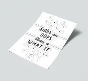 Ein paar Worte und so viel Wahrheit! Ein Design das zum Lebensmotto passt. BETTER AN OOPS THAN A WHAT IF. Bereue lieber einmal etwas, als niemals etwas gewagt zu haben!