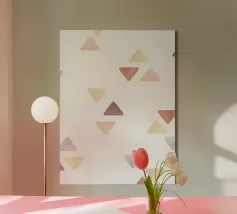 Dieses minimalistische Design mit sanften Dreiecken in Pastelltönen verleiht jedem Raum eine moderne und beruhigende Ästhetik. Die klaren Formen und weichen Farben machen dieses Motiv ideal für eine Vielzahl von Produkten, ob als Wandbild, Kissen oder Tasse. Perfekt für Liebhaber von geometrischer Kunst und minimalistischen Designs. Bringen Sie mit diesem zeitlosen Muster einen Hauch von Eleganz und Leichtigkeit in Ihre Einrichtung.
