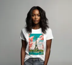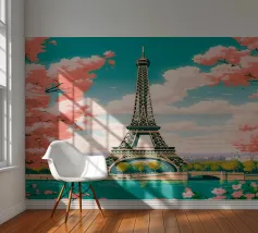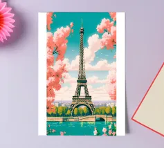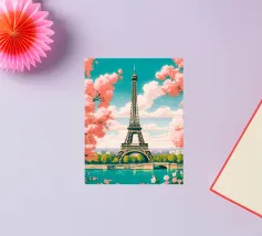 Ein vintage inspiriertes Reiseplakat aus Paris, Frankreich, das den Eiffelturm zeigt.