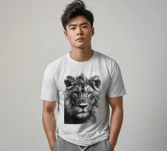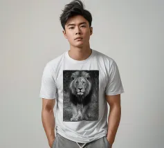 Dieses eindrucksvolle Schwarz-Weiß-Porträt eines majestätischen Löwen zeigt die beeindruckende Mähne und die kraftvolle Schnautze in detailreicher Nahaufnahme. Die minimalistische Komposition und die feine Fellstruktur unterstreichen die natürliche Schönheit und Stärke dieses wildlebenden Tieres.