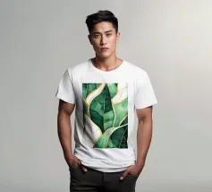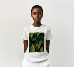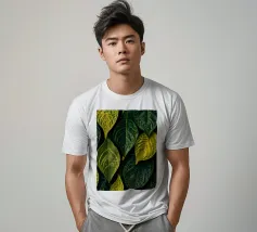 Eine Kollektion aus zarten grünen Blättern mit zarten Strukturen und Schattierungen schafft ein beruhigendes und harmonisches botanisches Muster, das Gefühle von Frieden und Gelassenheit hervorruft.