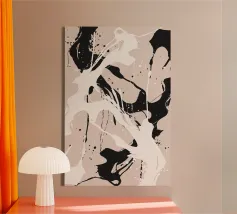 Die einzigartigen Farbspritzer und dynamischen Linien vermitteln ein Gefühl von Bewegung und Spontaneität und machen diese Illustration zu einem echten Blickfang. Außerdem bringt das chaotische und doch harmonische Design ein Gefühl von Freiheit und Kreativität in den Raum.