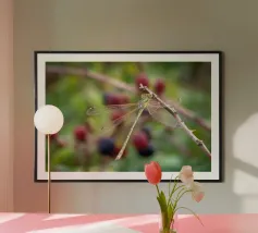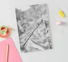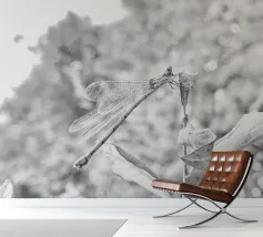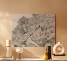 Die Domaine des Libellules in Schwarz-Weiß Reinheit der Stille und Anmut, wo die Flügel zu Federstrichen werden, und das Wasser ein Spiegel aus friedlichem Schatten. Ein Ort außerhalb der Zeit, wo jeder Flug von der Ewigkeit flüstert.