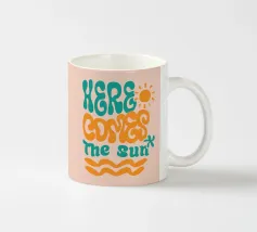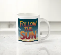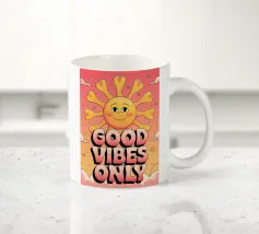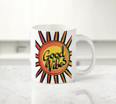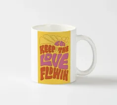 Ein sonnendurchflutetes Motiv im 70er-Jahre-Stil: Oben strahlt eine gelbe Sonne mit warmen Strahlen in Pink, Orange und Gelb, darunter fließen blaue Wellen, die den Schriftzug „GO WITH THE FLOW“ in kräftigem Vintage-Gelb tragen. Die geschwungene Linienführung und die satte Farbpalette vermitteln Leichtigkeit und ein Gefühl von unbeschwertem Sommer. Optimistisch, frei und gelassen – ein visuelles Mantra, das dazu einlädt, den Moment zu genießen und sich dem natürlichen Rhythmus hinzugeben.