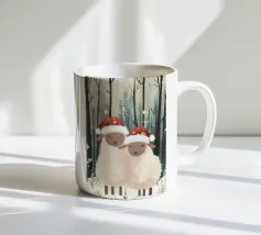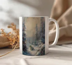 Idyllisches Winter Poster mit zwei Hasen, die in einem verschneiten Wald sitzen. Sanft fallende Schneeflocken und majestätische Tannen schaffen eine friedliche, märchenhafte Stimmung. Dieses Wandbild verbindet Tiermotive mit winterlicher Natur und eignet sich perfekt als Dekoration für Wohnzimmer, Schlafzimmer oder Kinderzimmer. Ein Kunstwerk, das Ruhe, Geborgenheit und die Magie des Winters in jedes Zuhause bringt – ideal für Tierliebhaber und Naturfreunde.