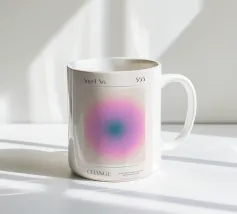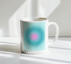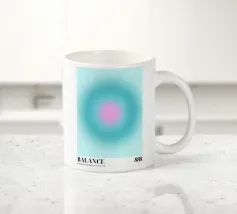 Ein weicher Farbverlauf verbindet das leuchtende Blau und Rosa und bildet abstrakte, sich überlagernde organische Formen. Die fließenden Übergänge und das ätherische Leuchten schaffen ein beruhigendes Bild.