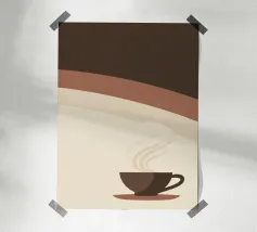 Eine dampfende Tasse Kaffee im Retro-Farbstil.