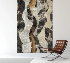 Diese elegante Illustration eines Schlangenmusters in beige-braunen Farbtönen fängt die faszinierende Textur und das wilde Flair der Reptilienwelt ein und eignet sich perfekt für modernes, und Elegantes Wohnen.