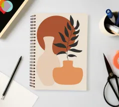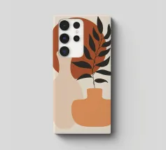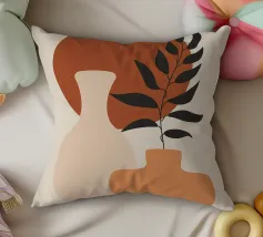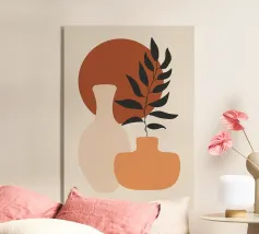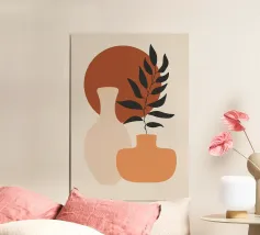 Vase Blätter Pflanze Zweig Töpferei Kreis Geometrische Formen Blume Laub Wohnkultur Scherenschnitt natürliche Elemente botanisch minimalistisches Design Erdtöne organische Formen Innendekoration Inspiration durch die Natur Modernes Dekor Kunstdruck