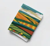 Eine lebendige Landschaft mit üppigen, hügeligen Getreidefeldern unter einem sonnigen Himmel mit flauschigen Wolken. Die stilisierte, farbenfrohe Darstellung der Landschaft zelebriert die Schönheit und den Reichtum der landwirtschaftlichen Flächen.