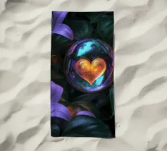 Pink Heart Art Print with Glitter and Gold Accents - Dieses visuell atemberaubende Werk zeigt ein glitzerndes rosa Herz in einer glasartigen Oberfläche, umgeben von goldenen Blättern und durchscheinenden Blasen. Die leuchtenden Farben Rosa und Gold in Kombination mit sanfter Beleuchtung schaffen eine verträumte, romantische Atmosphäre. Die komplizierten Details und die reflektierenden Texturen des Kunstwerks machen es zu einem perfekten Geschenk für Liebhaber moderner, skurriler Dekoration und romantischer Kunst.