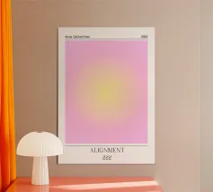 Entdecken Sie die harmonische Bestimmung mit dem Poster "Alignment" aus der "Aura Collection 2023", das die Engelsnummer 222 trägt. Dieses fesselnde abstrakte Werk zeigt einen weichen, ätherischen Farbverlauf, der von zartem Rosa im oberen Bereich in ein warmes, leuchtendes Gelb im Zentrum übergeht. Der harmonische Farbverlauf ruft ein tiefes Gefühl von Frieden und spiritueller Ausrichtung hervor. Sein klares, modernes Layout macht es zu einer raffinierten Ergänzung für jeden Raum und inspiriert zu Gleichgewicht und Wachstum. Dies ist ein hochwertiges digitales Poster, das mit 7000x5000 Pixeln und 300 dpi erstellt wurde, um scharfe Details und lebendige Farben zu gewährleisten.