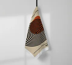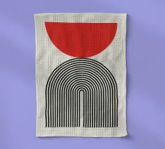 Mit diesem auffälligen abstrakten Kunstdruck verschmelzen Retro- und Modernismus-Ästhetik. Das Design zeigt einen kühnen roten Halbkreis, der einer komplexen Anordnung von schwarzen konzentrischen Bögen und parallelen Linien gegenübergestellt wird, wodurch eine visuell überzeugende und dynamische Komposition entsteht, die an das Grafikdesign der 70er Jahre erinnert. Dieses Stück verkörpert sowohl einen verspielten Retro-Charme als auch ein klares, modernes Gefühl. Mit einer beeindruckenden Auflösung von 7000x5000 Pixeln und einer Auflösung von 300 dpi stellt dieses hochwertige Digitalkunstwerk sicher, dass jede scharfe Linie und jeder leuchtende Farbton mit außergewöhnlicher Präzision wiedergegeben wird, was es zu einer überzeugenden Ergänzung für