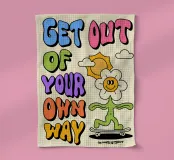 Befreien Sie sich mit diesem ermutigenden Kunstdruck "Get Out Of Your Own Way". Der eindrucksvolle Satz ist in fetter, wellenförmiger Typografie in leuchtenden Grün- und Lila-Tönen gehalten, die einen dynamischen, fast hypnotischen Effekt erzeugen. Die Buchstaben sind mit verspielten organischen Formen und subtilen Sternakzenten verwoben, die sich alle vor einem weichen, komplementären Hintergrund abheben. Dieses Werk vermittelt ein Gefühl von motivierender Retro-Psychedelik und eignet sich perfekt, um in jedem Raum zum Handeln und zur Selbstverbesserung zu inspirieren. Dieses hochwertige digitale Kunstwerk wird in einer atemberaubenden Auflösung von 7000x5000 Pixeln bei 300 dpi präsentiert, was scharfe Details und vi