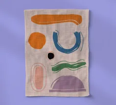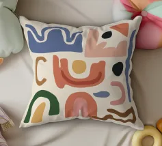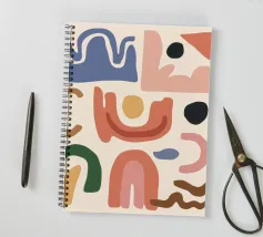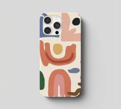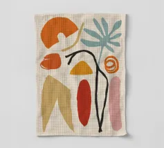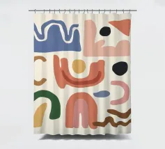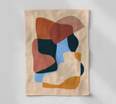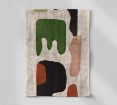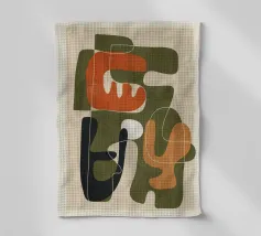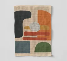Eine Sammlung abstrakter, erdfarbener Formen, darunter Bögen, Linien und Kurven, die in einer ausgewogenen Komposition im Bohème-Stil angeordnet sind.