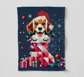 Ein niedliches geometrisches Design mit einem fröhlichen Beagle, der aus einem farbenfrohen Weihnachtsstrumpf schaut. Perfekt für alle, die Hunde und den festlichen Zauber der Feiertage lieben.Beagle-Motiv im festlichen Stil Geometrische Darstellung mit modernen Akzenten Weihnachtliche Elemente wie Zuckerstange und Stechpalmenblätter Lebendige Farben und verspieltes Design Ideal für Hundeliebhaber Kreative und fröhliche Illustration Bringt weihnachtliche Stimmung Einzigartiges, festliches Kunstwerk Süße Darstellung eines Hundes in einem Strumpf Kunstvolle Details und liebevolle Gestaltung