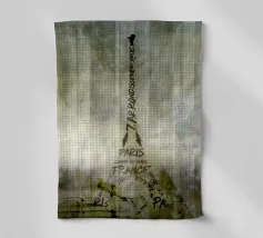 Das bekannte Wahrzeichen von Paris, der Eiffelturm, in einem sehr modernen Design. Kunstvolles Werk mit typografischen Elementen.