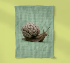 A brain is depicted being filled with coffee from a pot, accompanied by a loading bar below. The illustration humorously suggests the mind's need for coffee to function properly.